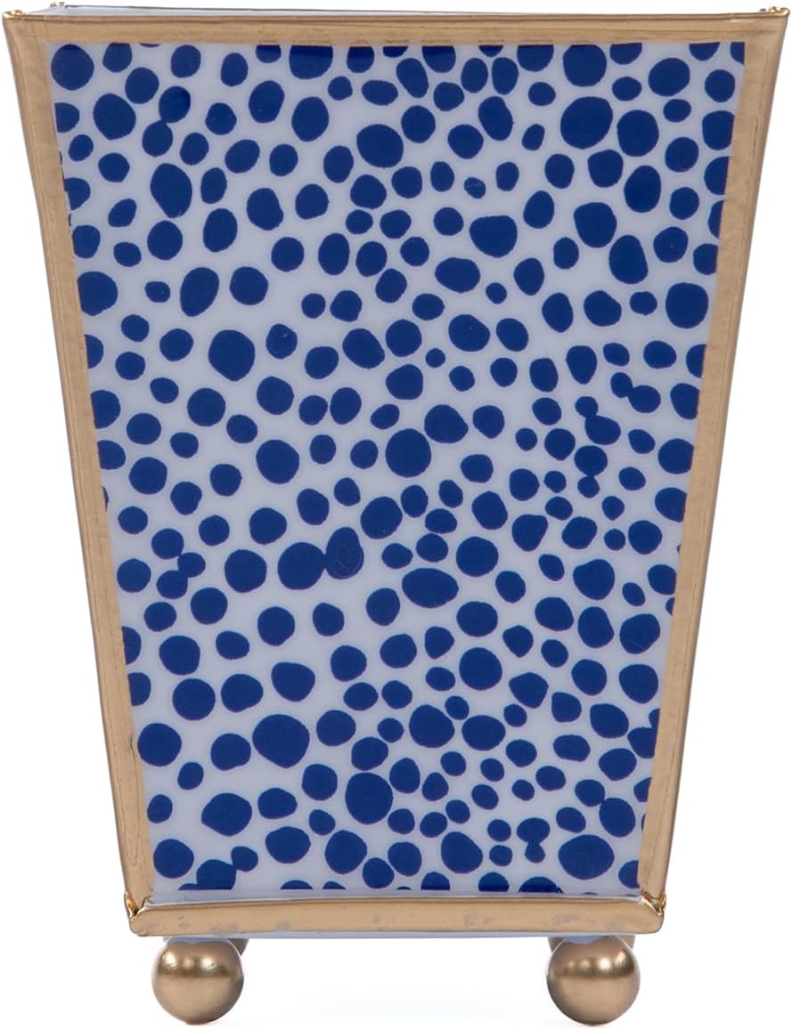 Introducing the Shagreen Print Round Cachepot Planter - a stunning addition to elevate home. With its striking gold trim and textured finish, the naturally classic cachepot creates a holistic addition to any environment. Crafted with the finest quality materials, our square cachepot planters are built to last and withstand the test of time. The White Background, coupled with the Blue Spots boasts an impressive display. Whether you're looking to add a touch of luxury to your home or office, or simply want to elevate your decor, the Shagreen Hand Painted Round Cachepot Planter is the perfect choice.
