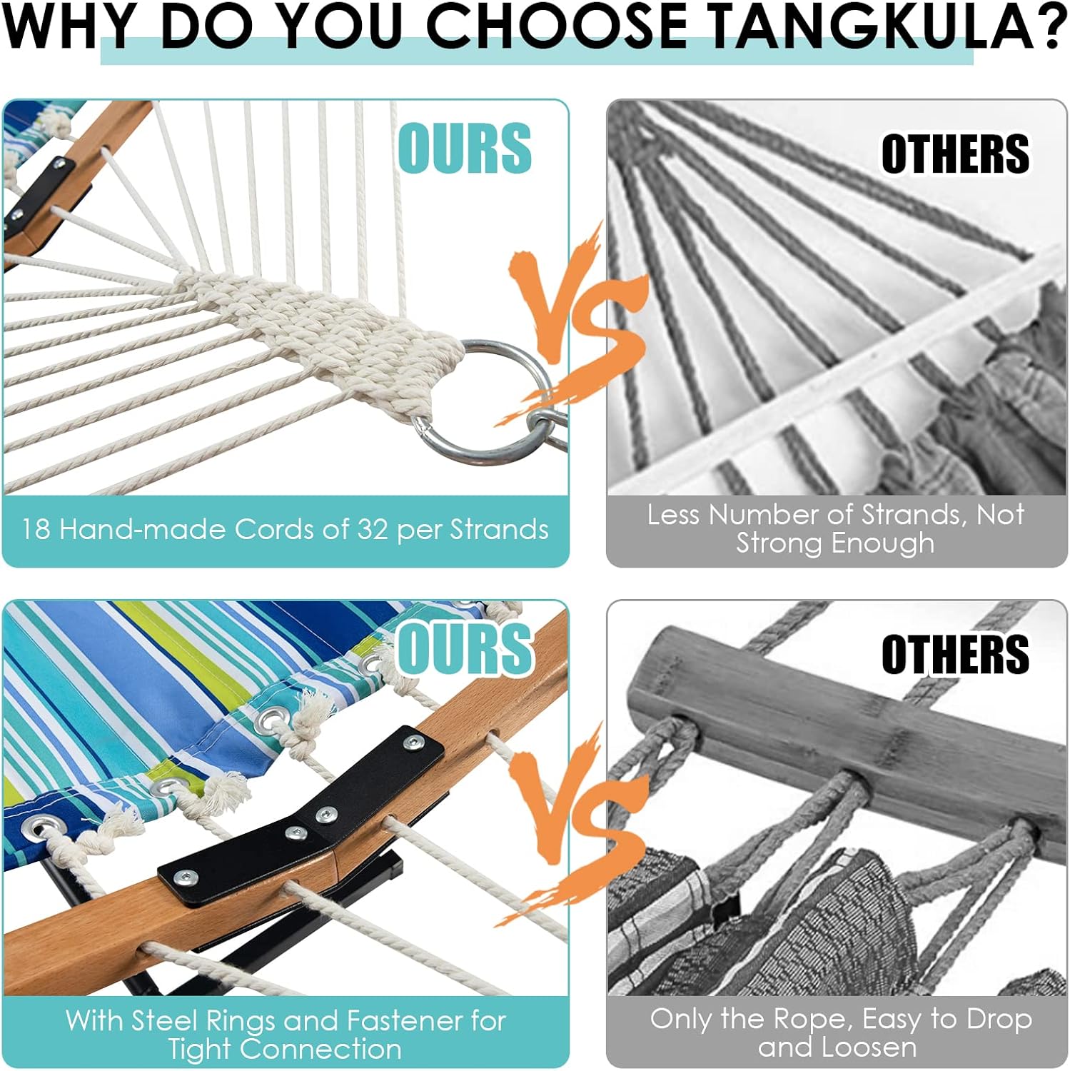 DescriptionWanna curl up for a peaceful nap on a comfortable lounger chair? Wanna lay outdoors to feel the embrace of nature? Our outdoor quilted fabric hammock with pillow will be a great addition to any outdoor living space! Constructed with selected polyester fabric, solid beech wood spreader bars and cotton ropes, the outdoor hammock for the backyard is durable and stable to offer you relaxation and comfort. Besides, the sturdy o-ring with chains is adjustable to find your optimal hanging height. Suitable for the backyard, patio, deck, or garden to let you and your family lay down, relax and have a great time!FeatureTwo 55.5" solid beech wood spreader bars provide stable supportSturdy O-ring with chains can be adjusted to set proper heightReinforced crossbars reduce the friction between the rope and woodSkin-friendly polyester fabric is breathable and comfortable18 hand-made cotton ropes of 32 strands offer reliable supportDetachable soft pillow with straps can be fixed on the hammock firmlyFolding and lightweight design for easy storage and effortless carryPerfect for the beach, poolside, patio, garden, backyard, and moreStylish mix color appearance is a fantastic addition for embellishingPlease kindly know that the stand is not includedSpecificationColor: Blue + Green/Light Blue + YellowMaterial: Beech Wood + PP Cotton + Polyester FabricOverall Dimension: 55.5" x 126" (L x W)Dimension of Hammock: 55.5" x 75" (L x W)O-ring Steel Chain Length: 10.5"Net Weight: 10 lbsWeight Capacity: 265 lbsPackage Includes:1 x Hammock with Pillow1 x Instruction